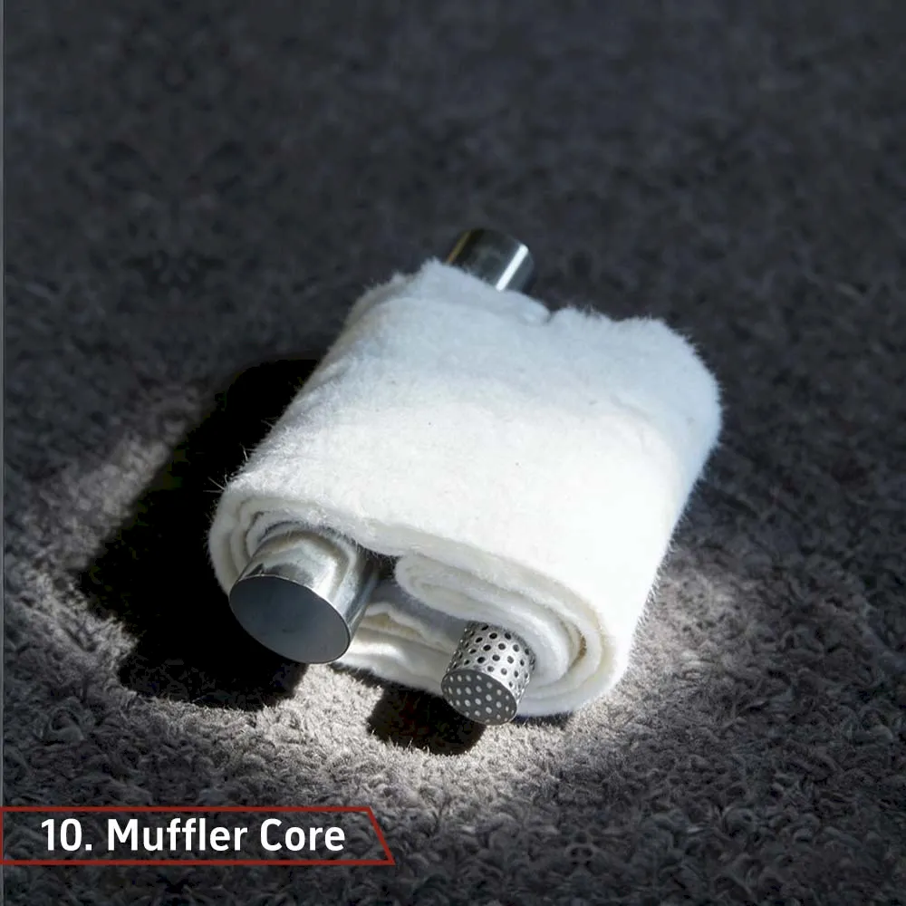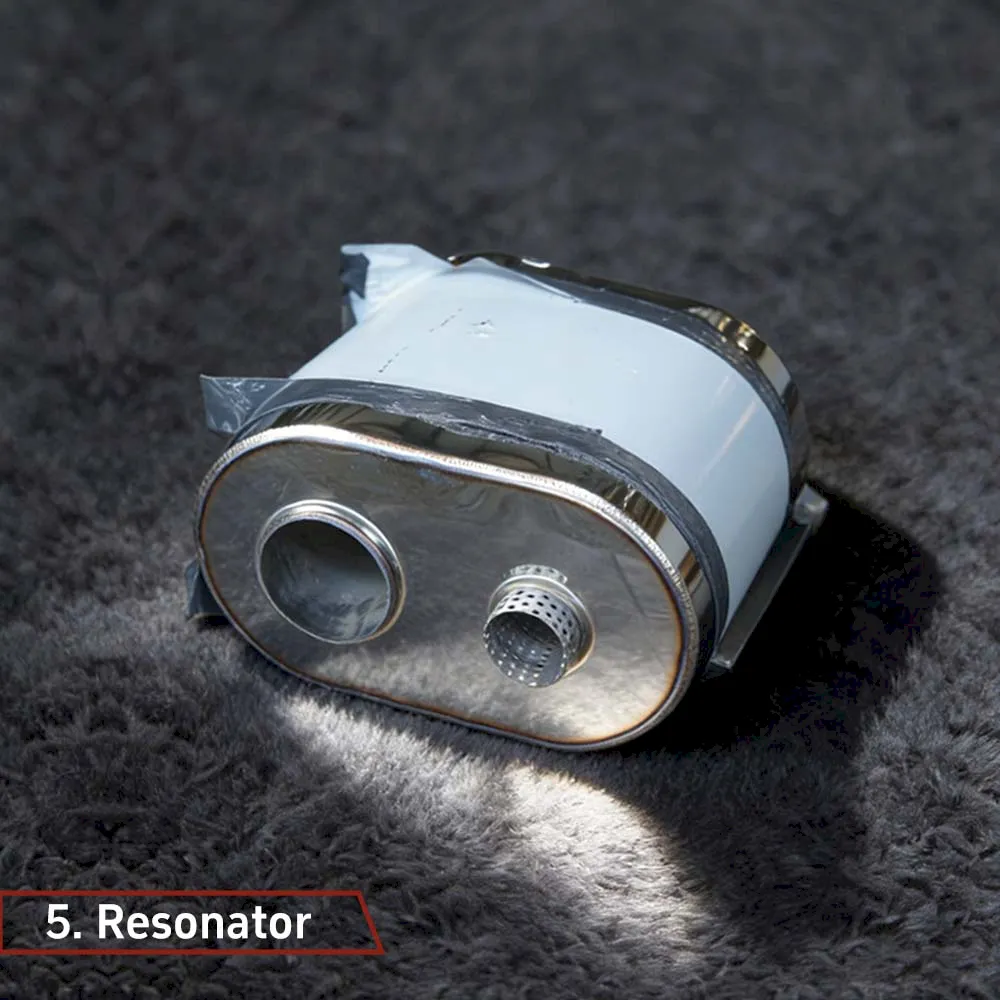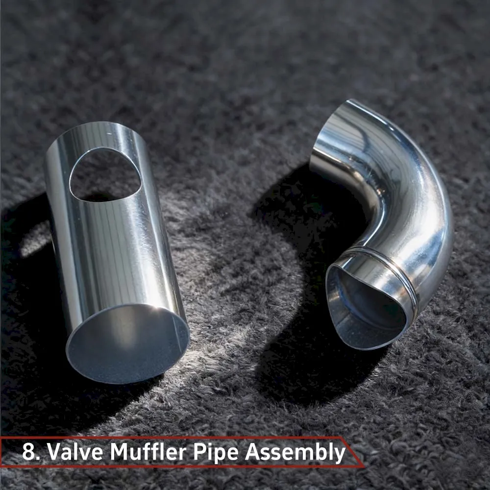 The valve muffler inner core enables direct exhaust sound when open and effective noise reduction when closed.