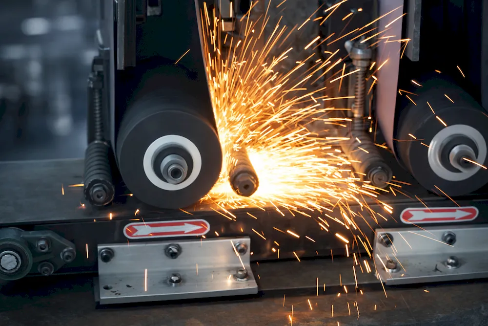 Grinds burrs on flange surfaces to achieve a smooth finish.