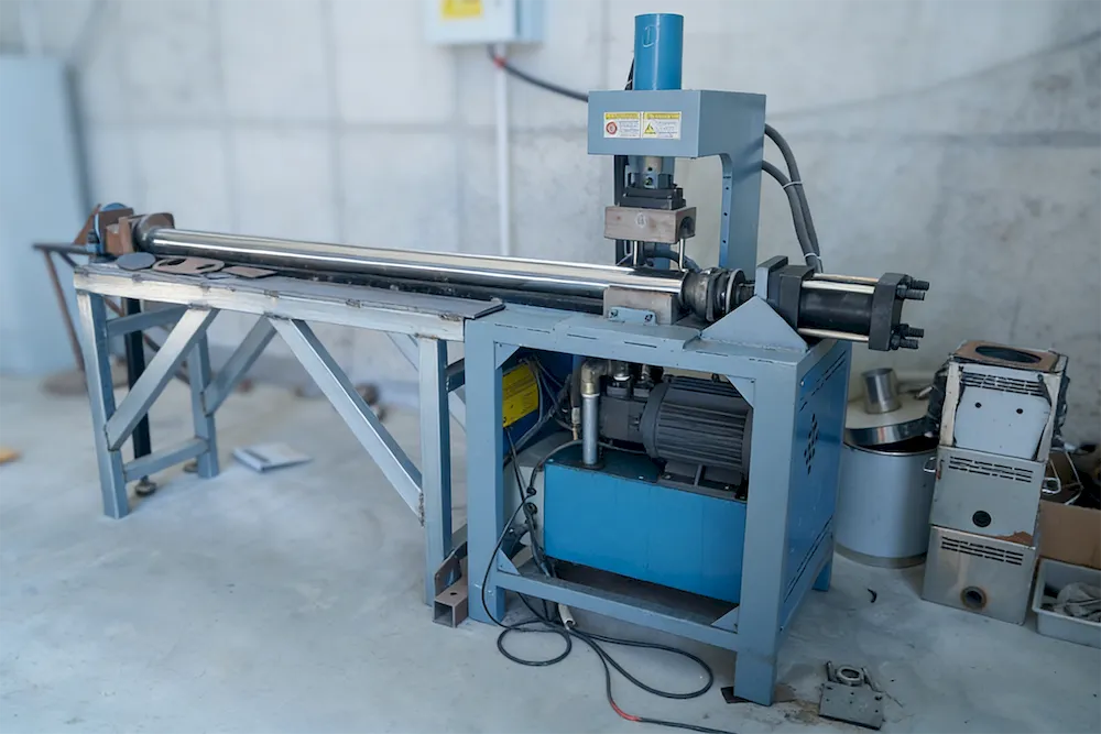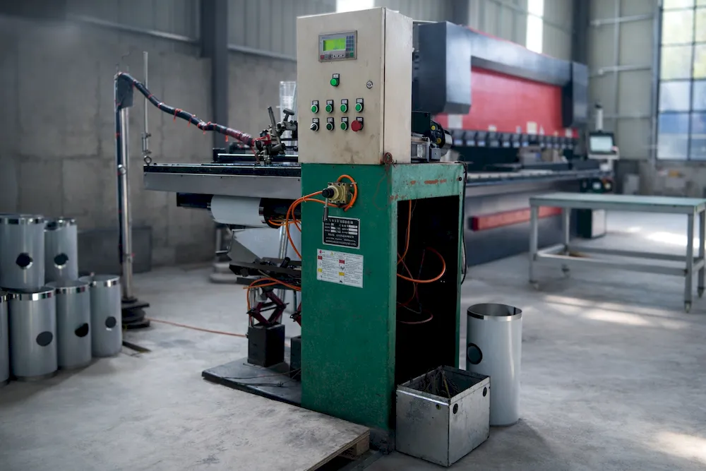 Two-Roll Plate Bending Machine for forming the cylindrical drum of valve mufflers.