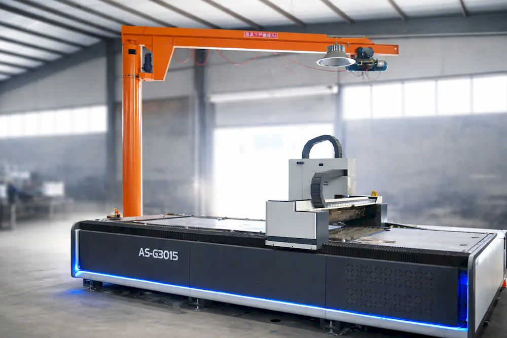 The cantilever crane with pneumatic suction cups facilitates feeding for the laser cutting machine, offering convenience and labor savings.