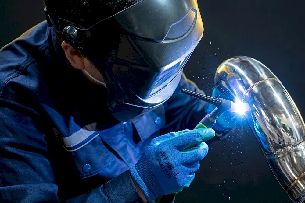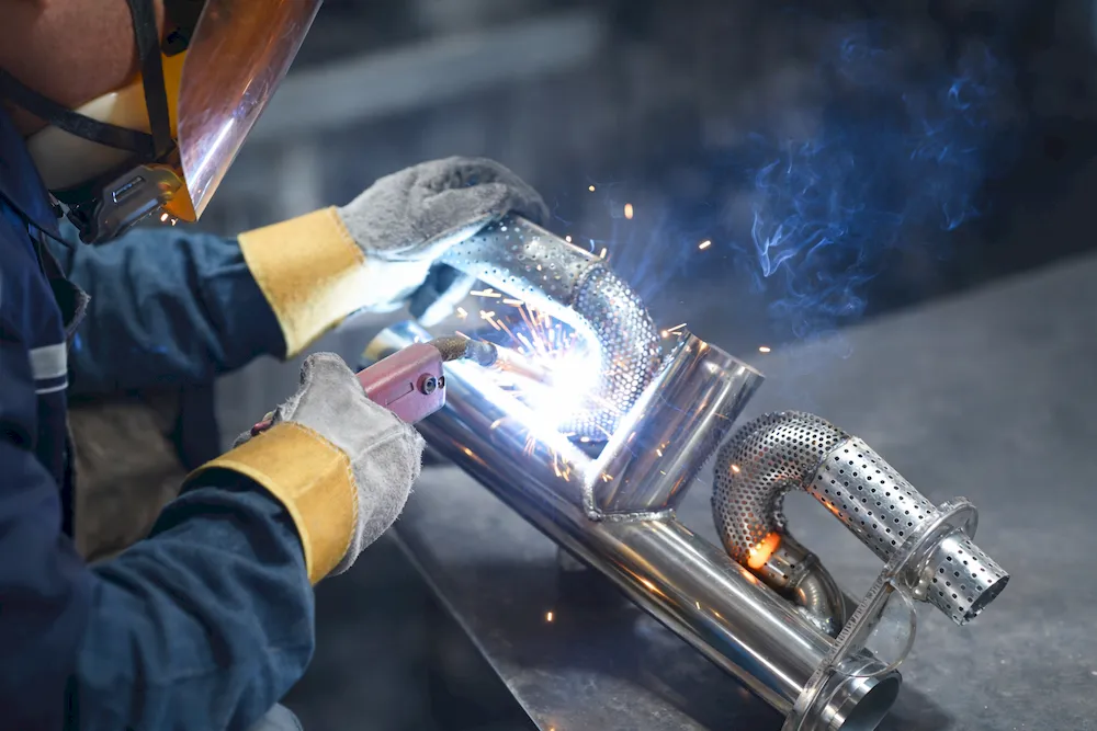 Manual assembly and welding of valve muƿer inner cores using CO₂ shielded welding ensures a robust and crack-free structure.